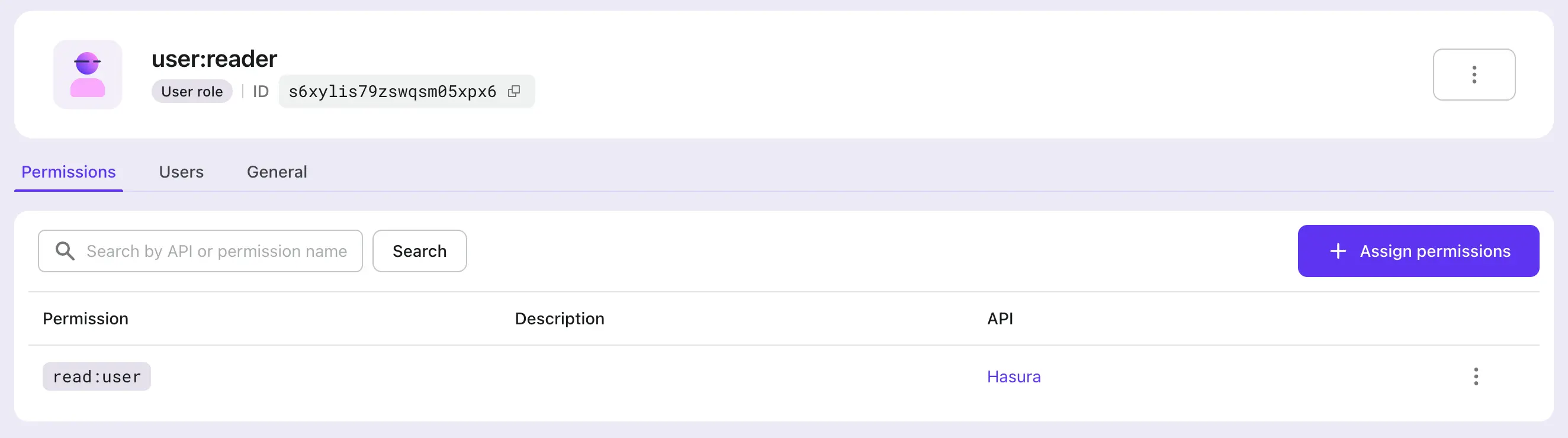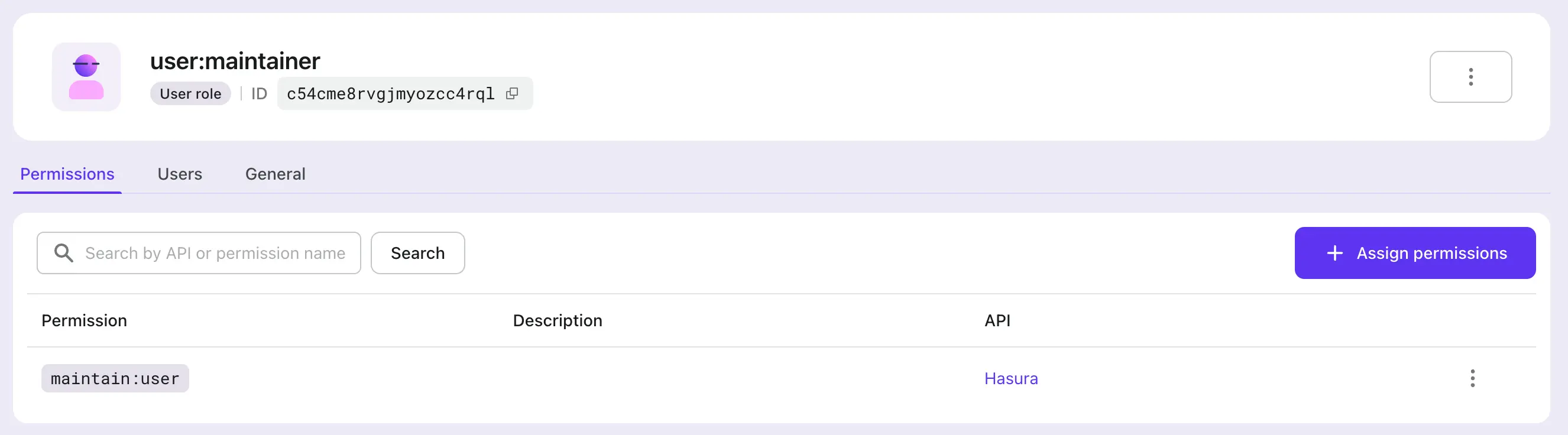 We need to create two scopes for the Hasura API resource mentioned in step 1, namely read:user and maintain:user, and then create two roles: user:reader (containing the read:user scope) and user:maintainer (including the maintain:user scope) to correspond one-to-one with Hasura's roles. And assign these roles to Logto users as needed.